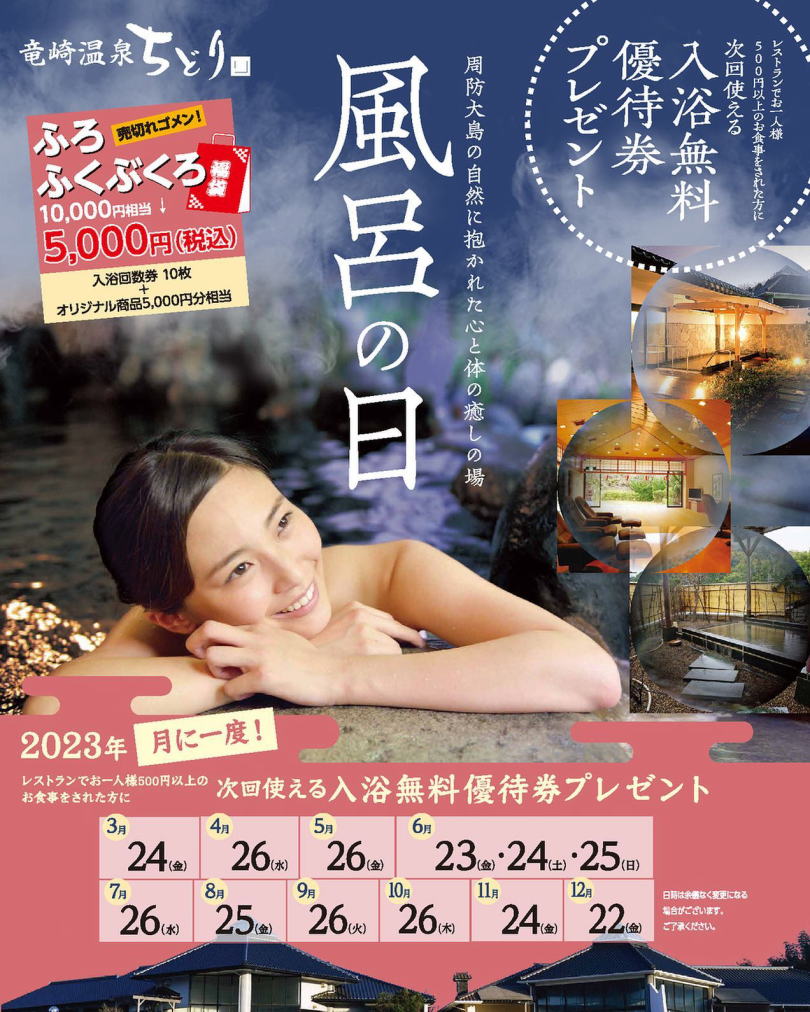 竜崎温泉がお届けする毎月一度の大人気キャンペーン「風呂の日」はお得な催しがいっぱい!