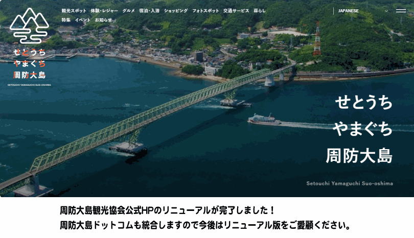 大島大橋が架かる大畠瀬戸(おおばたけせと)は、本土側の瀬戸山鼻と周防大島側の明神鼻に挟まれた間が最狭部(全長750m・深さ約20m)となり、干満の際には約7ノット(1ノット=1.852km/h)の潮流が渦を巻き、日本三大潮流のひとつに数えられています。 大島大橋の上や明神鼻の遊歩道より望む大畠瀬戸は、抜群の臨場感の中で迫力ある潮流をご堪能いただけます。