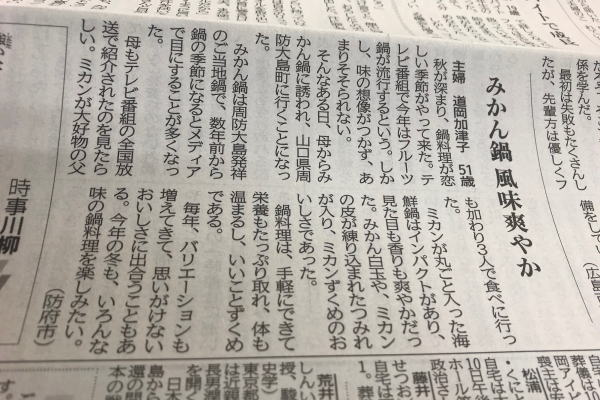 今シーズンも周防大島名物みかん鍋をご愛顧のほどお願い申し上げます。(竜崎温泉)